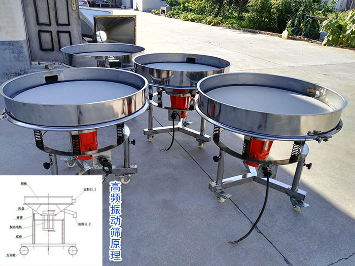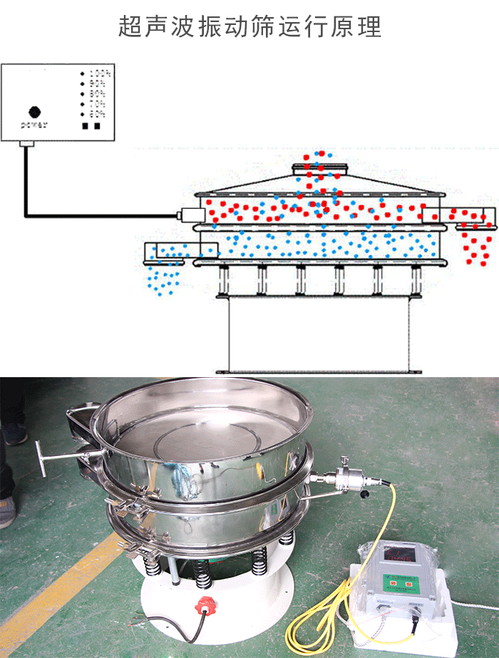超聲波振動篩是將220v、50HZ或110v、60HZ電能轉化為38KHZ的高頻電能,輸入超聲換能器,將其變成38KHZ機械振動,從而達到高效篩分和清網的目的。超微細粉體接受巨大的超聲加速度,使篩面上的物料始終保持懸浮狀態(tài),從而抑制粘附、摩擦、平降、等堵網因素。解決了強吸附性、易團聚、高靜電、高精細、高密度、輕比重等篩分難題,使超細微粉篩分不再難事,特別適合高品質、精細粉體的用戶使用 高頻振動篩采用筒體式偏心軸激振器及偏塊調節(jié)振幅,物料篩淌線長,篩分規(guī)格多,具有結構可靠、激振力強、篩分效率高、振動噪音小、堅固耐用、維修方便、使用安全等特點。由于高頻振動篩采用了高頻率,一方面破壞了礦漿表面的張力和細粒物料在篩面上的高速振蕩,加速了大密度有用礦物和析離作用,增加了小于分離粒度物料與篩孔接觸的概率。