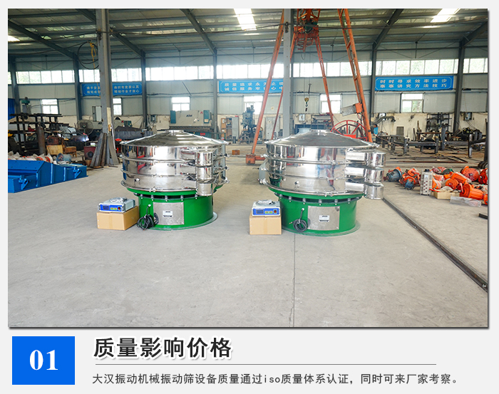 做篩分設(shè)備的廠家有很多,但是也有很多皮包公司,沒有生產(chǎn)能力,還有一部分廠家廠家為了盈利,以次充好,會在選材、生產(chǎn)環(huán)節(jié)偷工減料,看著當(dāng)時買的可便宜,但是沒想過售后問題,后續(xù)會因為設(shè)備質(zhì)量問題問產(chǎn)生大量費用。大漢超聲波振動篩質(zhì)量以與其為了一時的低價誘惑造成在設(shè)備質(zhì)量方面的疏忽是必須要避免的。大漢振動機械振動篩設(shè)備質(zhì)量是通過iso質(zhì)量體系認證的,同時您也可以來大漢振動機械考察,看一下我們的生產(chǎn)能力。好產(chǎn)品不怕比價格。